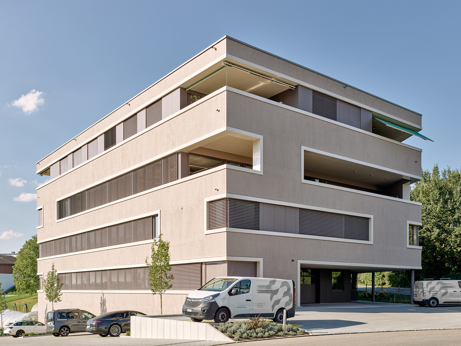 Am Rande der Gemeinde Rain haben lokale Gewerbeunternehmer gemeinsam das Wohn- und Geschäftshaus «Dubenmoos» realisiert. Mit den langen, weissen Eckzargen besticht dieser Neubau durch seine selbstbewusste Fensteranordnung. Die Feba wurde bereits in einer frühen Planungsphase in die Entwicklung dieses Wohn- und Geschäftshauses einbezogen, was sich positiv auf die Bauphase auswirkte.