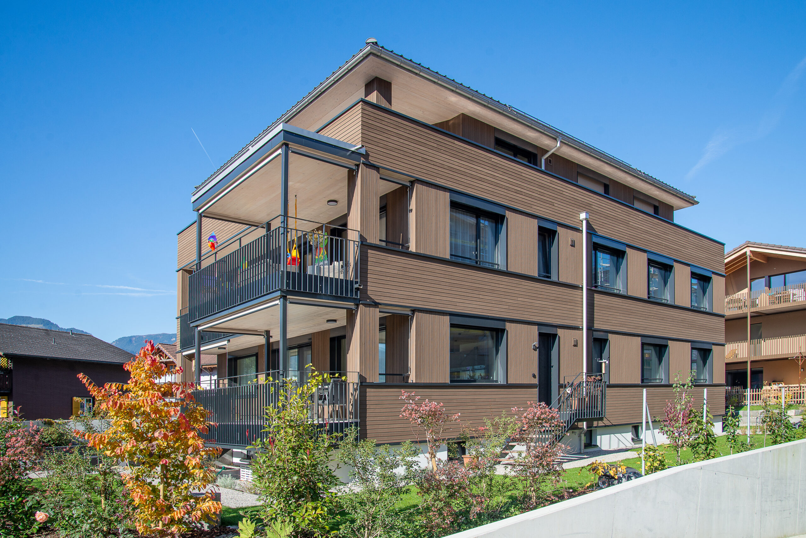 Nahe dem Kernser Zentrum entstand dieses Mehrfamilienhaus in Holzsystembauweise. Die Quetschbug-Zargen sowie die Streifbänke verleihen dem Gebäude eine wunderschöne Optik und bieten den exponierten Fassadenteilen zudem optimalen Schutz. Die Feba Fassadenbauteile AG war bei diesem Projekt bereits frühzeitig involviert. Dank der anschliessenden perfekten Datenaufbereitung der Fassadenelemente resultierte für das Holzbauunternehmen ein Minimalaufwand: Das komplette Projekt konnte durch die Feba ab den gelieferten 3D-Daten produziert werden.